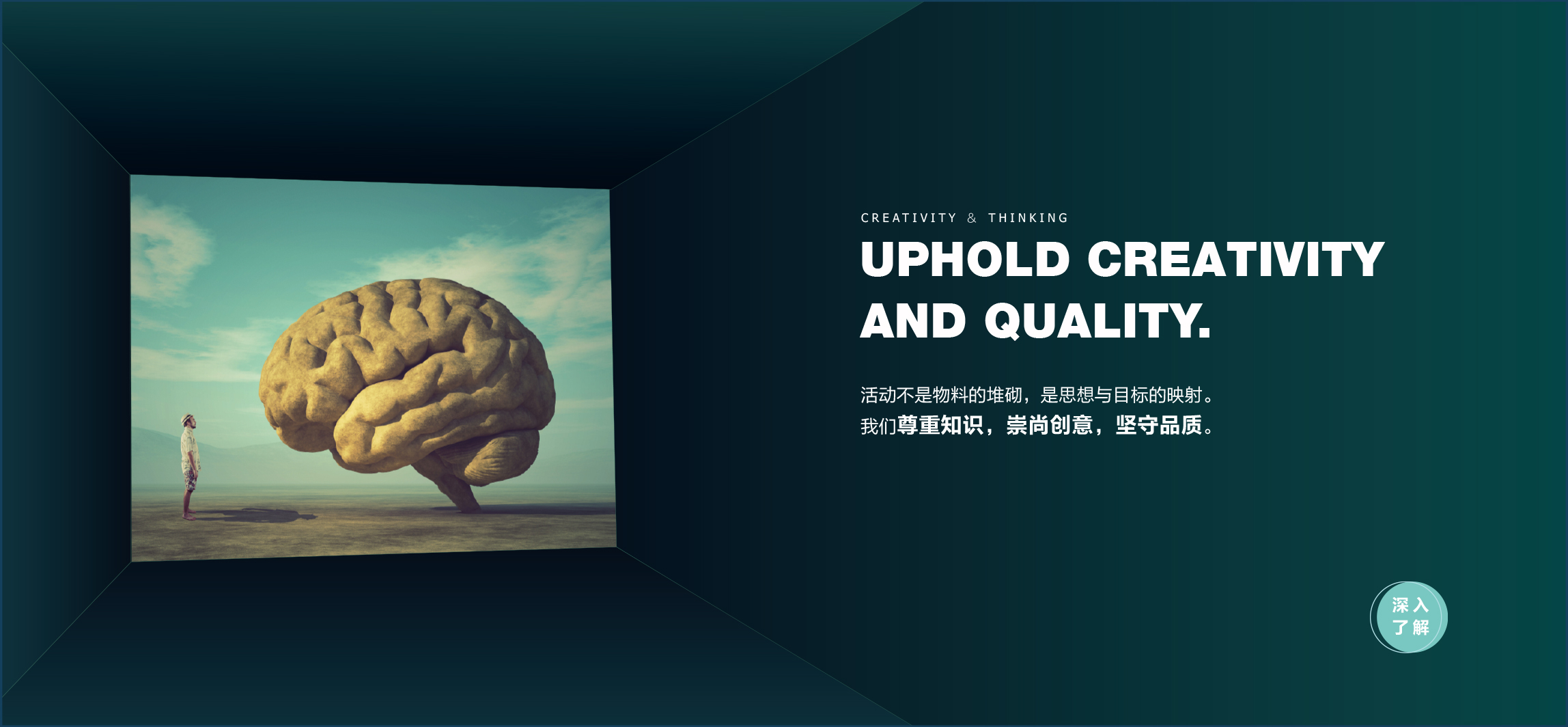 活動是一門綜合藝術,是傳播策略、公關媒介、平面設計、空間規劃、工藝工法、臺形表、聲光電的集大成。整合活動關鍵要素,把控現場每一個環節,把關活動每一次出品,使活動效果最優化,是我們每場執行的標準。